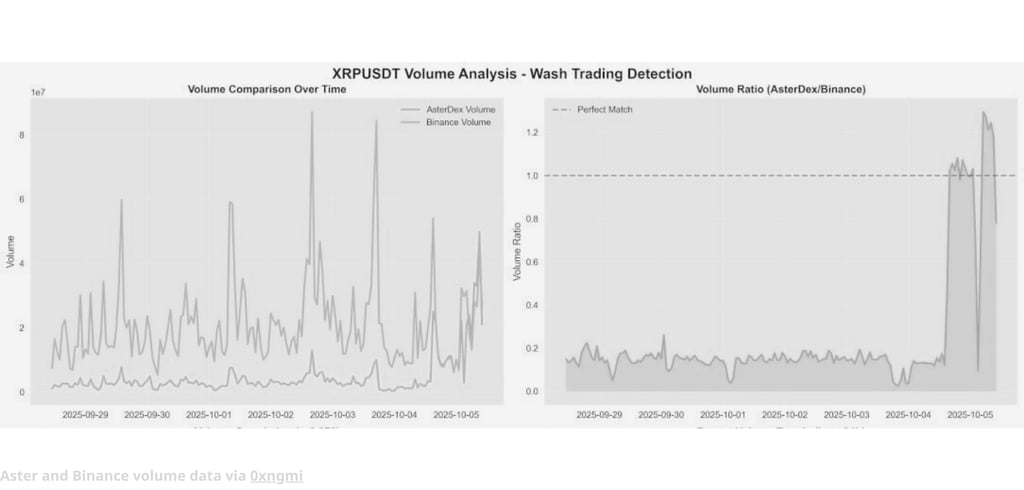 DeFiLlama, đã loại bỏ số liệu thống kê khối lượng giao dịch hợp đồng tương lai vĩnh viễn của Aster DEX khỏi bảng xếp hạng, viện dẫn những dấu hiệu cảnh báo rõ ràng về giao dịch wash trading tiềm ẩn, tương tự hoạt động của Binance với tỷ lệ 1:1 gần như hoàn hảo trên các cặp giao dịch chính như XRPUSDT.
