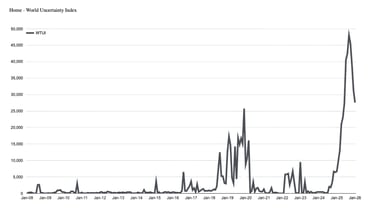Chỉ số bất ổn toàn cầu (WUI) được cho là đã đạt mức cao kỷ lục, vượt qua mức ghi nhận trong đại dịch COVID-19, cuộc khủng hoảng tài chính toàn cầu năm 2008 và sự sụp đổ của bong bóng dot-com. Cột mốc này báo hiệu mức độ mơ hồ về kinh tế vĩ mô và địa chính trị đặc biệt – điều có thể đang định hình lại việc phân bổ vốn, các quyết định chính sách và tâm lý nhà đầu tư trên toàn thế giới. Không giống như các cuộc khủng hoảng cục bộ trong quá khứ, sự bất ổn hiện nay dường như đa chiều và dai dẳng.