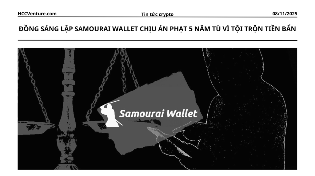 Co-Founder Samourai bị kết án 5 năm tù vì liên quan đến Crypto Mixer