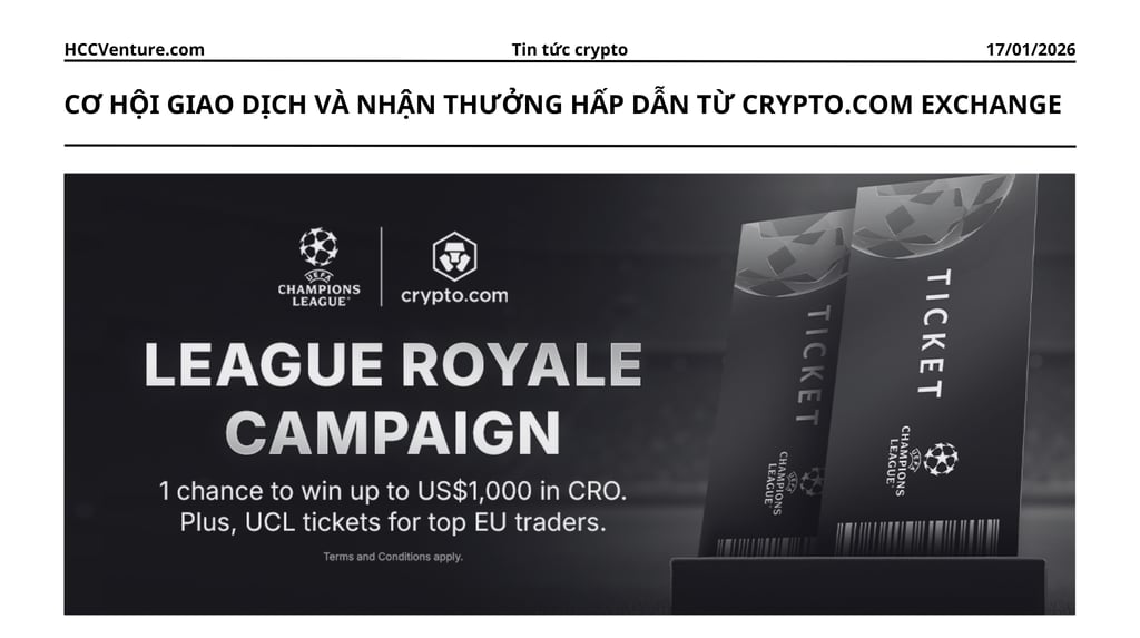 Crypto.com ra mắt Road to Budapest Trading Tournament, một cuộc thi giao dịch spot dành cho người dùng Crypto.com Exchange với tổng giá trị giải thưởng lên đến 5.000 USDC cùng vé hạng nhất xem trận đấu UEFA Champions League.