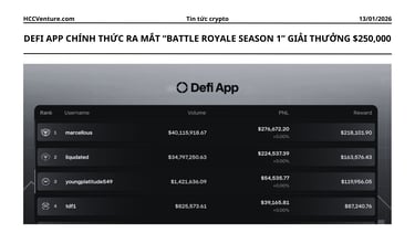 Battle Royale Season 1 trên Defi App là cuộc đua tập trung kỹ năng và hiệu quả giao dịch thực sự – một sân chơi rất đáng để trader chuyên nghiệp cũng như những người muốn thử thách bản thân cân nhắc tham gia. Với quỹ thưởng lớn, quy tắc minh bạch và tiêu chí PnL – cuộc thi này hứa hẹn sẽ là một trong những sự kiện đáng chú ý đầu năm 2026 trong cộng đồng crypto trading.