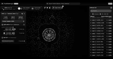 After receiving the $APR tokens, these wallets transferred them to new secondary addresses, forming two concentric layers of the network — a sign often associated with Sybil mining or coordinated fund diversion.