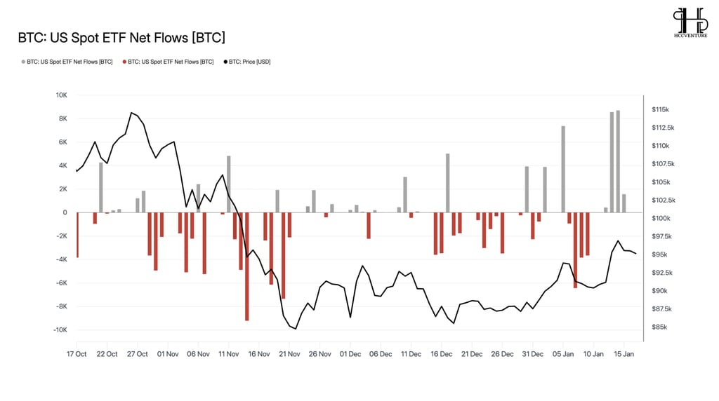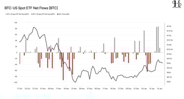 In the first week of 2026, US Spot Bitcoin ETFs recorded significantly stronger net inflows compared to the end of 2025, with positive line net flows, indicating that money is once again flowing into Spot ETF products after a period of slight decline.