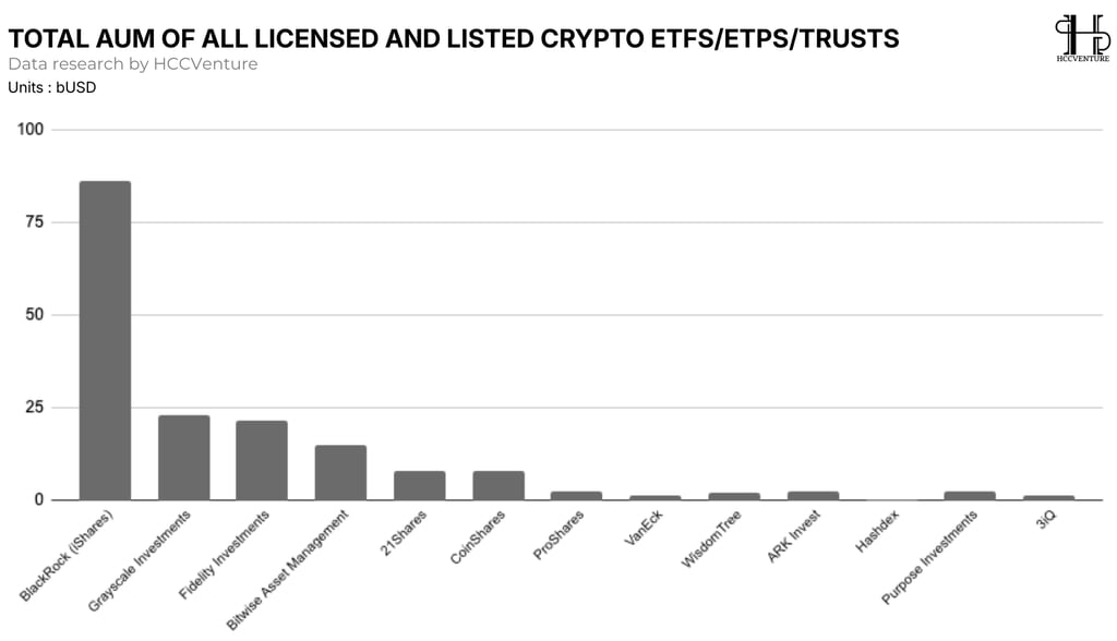 The AUM (Average Capital Assets) of all licensed and listed Crypto ETFs/ETPs/Trusts clearly demonstrates the intense concentration of institutional capital in the crypto market , with Bitcoin ETFs serving as the central channel. Bitcoin ETFs play a pivotal role in this process, and the high concentration of AUM indicates the deep integration of the crypto market into the global financial system.