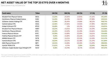Notably, the 1-year performance of most ETFs remains negative, while the 3-year timeframe shows significant gains across many products. This divergence reflects that crypto ETFs remain a strongly cyclical asset class , but current capital flows are not based on excessive long-term growth expectations.