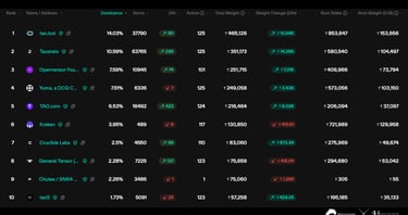 Quantitatively, when compared with the analyzed staking and dominance data, a strong correlation can be seen between market share (stake) and activity share (heatmap intensity) . Validators holding more stakes are also the entities with the highest activity levels across multiple subnets. This is a self-reinforcing system, where larger stakes lead to more opportunities for activity, thereby attracting even more stakes.