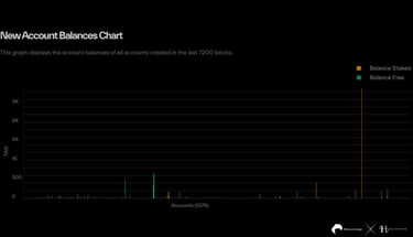 Considering the distribution structure between staked balance (blue) and free balance (red) , a clear dominance of staking is evident from the outset. The majority of accounts tend to directly transfer assets into staked status rather than keeping them as free balance. This is a significant indicator, reflecting long-term investment behavior and a focus on participating in the consensus mechanism and exploiting the network's yield, rather than short-term speculation.
