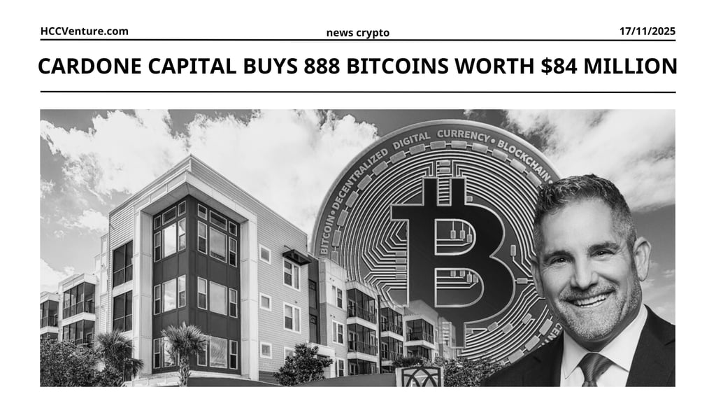 Cardone Capital, the real estate investment empire led by entrepreneur and investor Grant Cardone, has made a decisive move into the digital asset space by purchasing 888 Bitcoins, worth about $84 million.