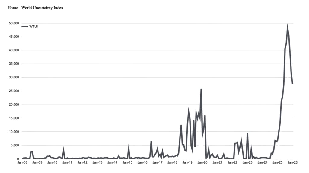 The World Uncertainty Index (WUI) is believed to have reached a record high, surpassing levels seen during the COVID-19 pandemic, the 2008 global financial crisis, and the collapse of the dot-com bubble. This milestone signals an exceptional level of macroeconomic and geopolitical uncertainty – which may be reshaping capital allocation, policy decisions, and investor sentiment worldwide. Unlike past localized crises, the current instability appears multifaceted and persistent.