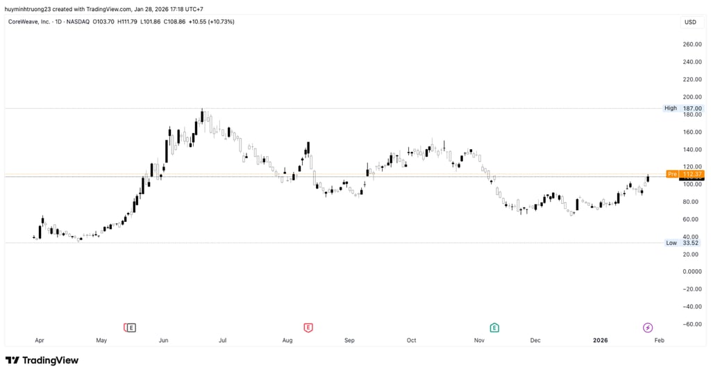 CoreWeave (stock ticker: CRWV on Nasdaq ) responded with a sharp surge, with shares opening +15.2% higher on January 27 and trading +13-16% higher during the day , pushing the company's market capitalization above $25 billion .
