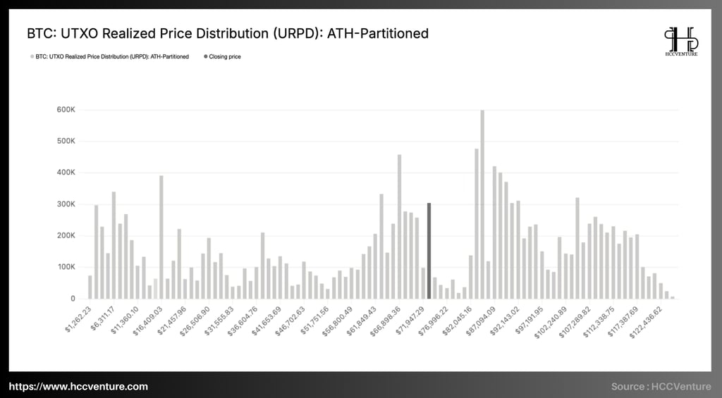 Bitcoin has broken through the $70,000 mark and entered a thin accumulation gap between $72,000 and $82,000. URPD (Unrealized Profit/Loss Distribution) analysis clearly confirms that on-chain resistance in this region is very limited , with most supply only forming at significantly lower price levels than the current one.