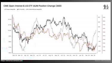 The clear divergence between accelerating ETF inflows and the still modest CME open interest reflects a healthy market structure: price increases are supported by real capital inflows into spot exposure , not by leveraged speculative positions. This is a typical pattern of the early stages of a transitional bull market, where institutional demand returns without the risk of cascade liquidation from futures.