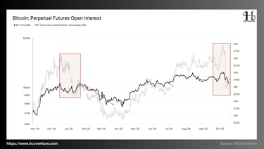 When compared to the January–March 2025 period (first red box on the chart), the current pattern shows clear symmetry. Both periods started from a high leverage peak – a sustained positive funding rate – OI exceeding $45 billion , and both ended with a strong “drag” that reduced OI by around 25–30%. After the early-year cleanup, the BTC market entered a 6-month recovery phase, with the price rising from ~$75,000 to ~$126,000.