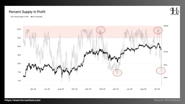 The market suffered a ~$19 billion derivatives deleverage – one of the largest in history. The shock broke through the $117k–$114k cost-basis cluster, putting some recent peak buyers into losses, exposing short-term fragility.