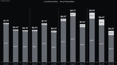 Decentralized perpetual futures exchanges (DEXs) experienced explosive growth in 2025, with trading volume soaring 346% year-over-year and total perpetual contract trading value reaching approximately $92.9 trillion. This robust expansion highlights a structural shift in the cryptocurrency market, where derivatives trading is increasingly dominating traditional spot markets.