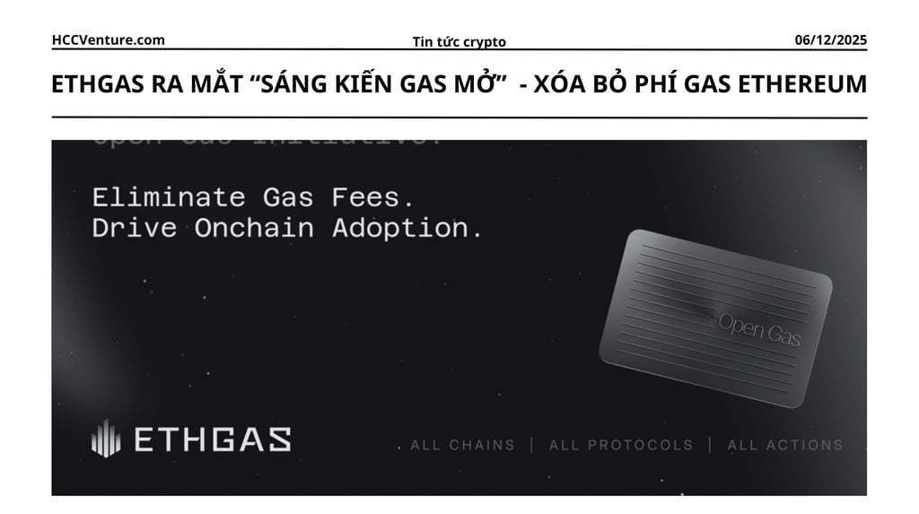 ETHGas, một dự án tiên phong trong hệ sinh thái Ethereum, vừa công bố ra mắt Sáng kiến Open Gas – một bộ công cụ mã nguồn mở nhằm loại bỏ hoàn toàn phí gas cho người dùng cuối.