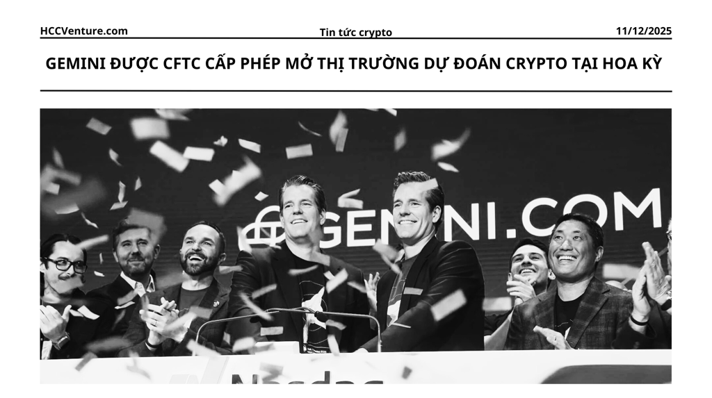Sàn giao dịch tiền điện tử Gemini Space Station, Inc. đã đạt được một cột mốc quan trọng về mặt pháp lý sau khi Ủy ban Giao dịch Hàng hóa Tương lai Hoa Kỳ (CFTC) cấp phép cho công ty con của mình, Gemini Titan, LLC, giấy phép Thị trường Hợp đồng Được Chỉ định (DCM) — mở đường cho công ty cung cấp các thị trường dự đoán được quản lý cho khách hàng Hoa Kỳ.
