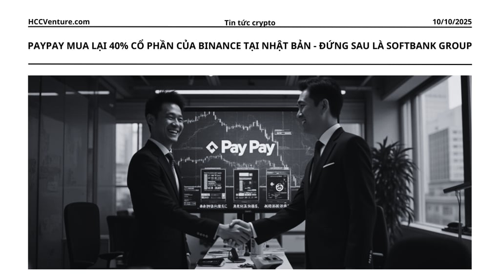 PayPay Corporation, nhánh thanh toán kỹ thuật số của Tập đoàn SoftBank, đã chính thức công bố việc mua lại 40% cổ phần của Binance Nhật Bản, đánh dấu một trong những quan hệ đối tác chiến lược quan trọng nhất giữa tài chính truyền thống và ngành công nghiệp tiền điện tử toàn cầu trong năm 2025.
