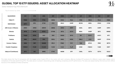 Heatmap này cho thấy một bức tranh rất rõ ràng về cách các định chế tài chính lớn đang định vị crypto trong danh mục ETF toàn cầu. Điểm nổi bật nhất là crypto không còn là một “nhánh riêng lẻ”, mà đã được tích hợp trực tiếp vào hệ sinh thái ETF cốt lõi của các nhà phát hành hàng đầu.