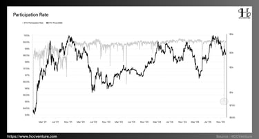 Ethereum Participation Rate xác nhận rằng Ethereum đã bước vào giai đoạn ổn định vận hành ở cấp độ hạ tầng tài chính toàn cầu. Mức độ tham gia gần như tuyệt đối của validator trong suốt nhiều năm liên tiếp, bất chấp biến động giá và chu kỳ thị trường, cho thấy niềm tin vào Ethereum mang tính hệ thống, PoS đã đạt trạng thái cân bằng bền vững và Ethereum không còn là một “thí nghiệm công nghệ”, mà là một nền tảng tài chính đang vận hành thực tế.