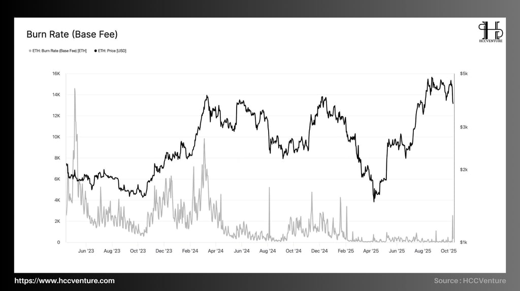 Khi mạng tắc nghẽn, base fee tăng sẽ đẩy Burn Rate lên (đã từng >70k ETH/ngày), chuyển nhanh cân bằng cung sang giảm phát ròng trong ngắn hạn. Hiện trạng phí rẻ đặt nền tảng mở rộng người dùng, tạo dư địa cho một chu kỳ đốt phí “theo cầu” khi hoạt động bùng nổ.
