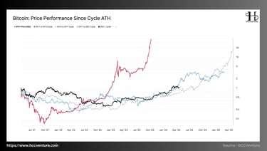 Trong ba chu kỳ trước, giai đoạn giữa này luôn là thời điểm Bitcoin bước vào pha tái tích lũy – tái cân bằng cung cầu, trước khi mở rộng mạnh mẽ trong 12–18 tháng kế tiếp.