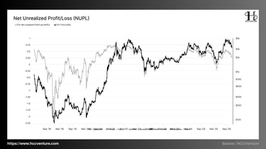 Hiện tại NUPL không tiến vào vùng euphoria, nhưng cũng không rơi vào vùng fear. Cấu trúc này thường xuất hiện trong mid-cycle consolidation. gGai đoạn tái tích lũy trước mở rộng và khi thị trường định giá hợp lý.