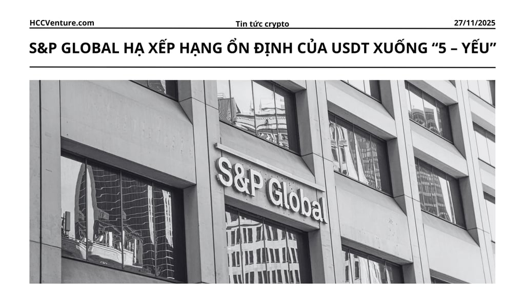 S&P Global Ratings đã hạ đánh giá về độ ổn định của USDT - đồng tiền ổn định lớn nhất thế giới với vốn hóa thị trường 184 tỷ đô la - xuống mức "5 (yếu)", mức thấp nhất trên thang điểm năm điểm của họ.