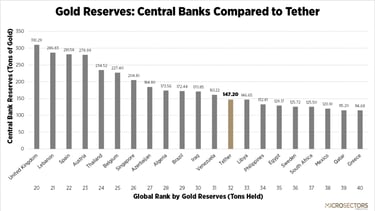 Điều này đưa Tether vượt lên trên hầu hết các tổ chức tư nhân, quỹ đầu cơ và các cá nhân có tài sản cực kỳ lớn về quyền sở hữu vàng vật chất, chỉ đứng sau các ngân hàng trung ương lớn (Mỹ, Đức, Ý, Pháp, Nga, Trung Quốc) và một số ít quỹ đầu tư quốc gia.
