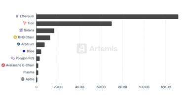 Ethereum vẫn là lớp thanh toán stablecoin chiếm ưu thế về mặt tuyệt đối, nhưng sự tăng trưởng nhanh chóng của Solana cho thấy sự chuyển dịch sang phân phối thanh khoản đa chuỗi.