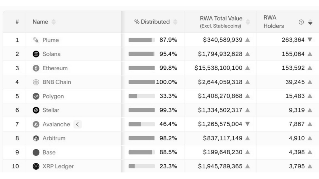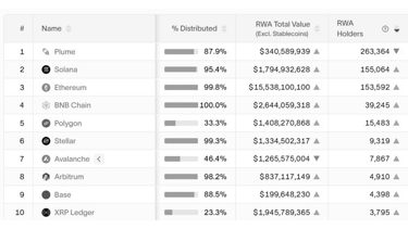 Theo các báo cáo, tổng lượng tài sản thực tế được mã hóa (RWA) mà các ví trên mạng Solana nắm giữ đã vượt qua các ví trên Ethereum, như trái phiếu, cổ phiếu và các công cụ tín dụng—được đưa lên mạng lưới blockchain.