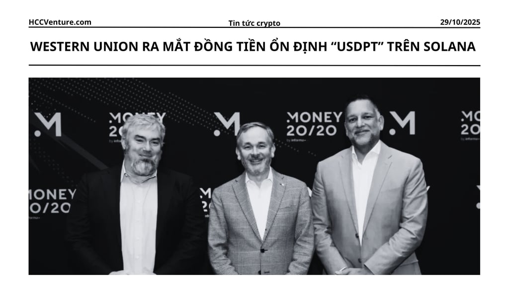 Trong một động thái quan trọng có thể định hình lại ngành tài chính xuyên biên giới, Western Union (WU) — một trong những công ty chuyển tiền và thanh toán lớn nhất thế giới — đã công bố kế hoạch ra mắt đồng stablecoin USDPT được bảo chứng bằng đô la Mỹ của riêng mình, trên blockchain Solana vào đầu năm 2026.