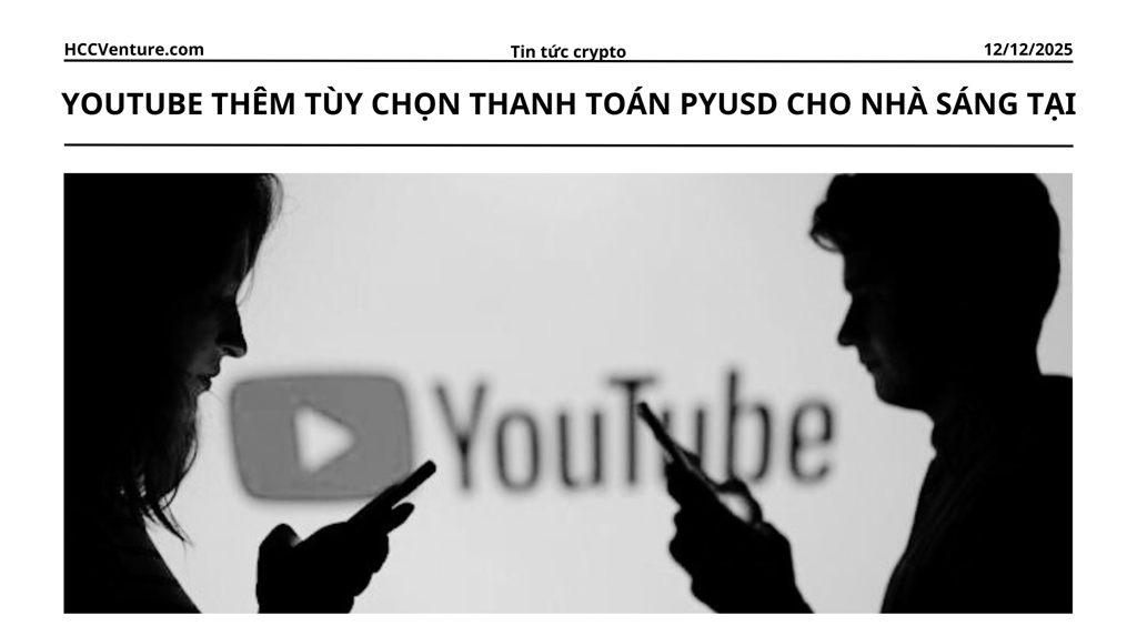 YouTube đã chính thức thêm tùy chọn thanh toán bằng stablecoin PYUSD (PayPal USD) cho nhà sáng tạo nội dung tại Mỹ, đánh dấu bước tiến lớn trong việc tích hợp crypto vào hệ thống kiếm tiền.